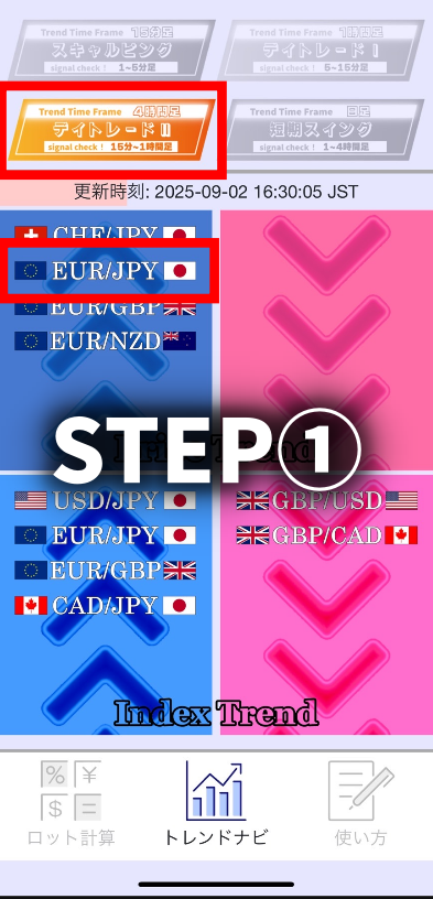 まず初めにトレンドナビで、もっとも優位性の高い通貨ペアを選択。