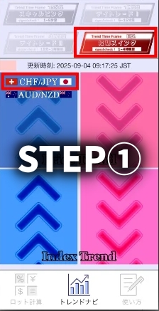 まず初めにトレンドナビで、もっとも優位性の高い通貨ペアを選択。