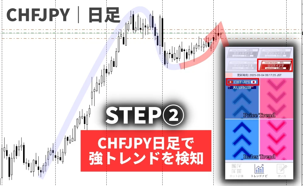 このタイミングでトレンドナビが強いトレンドを検知したため、