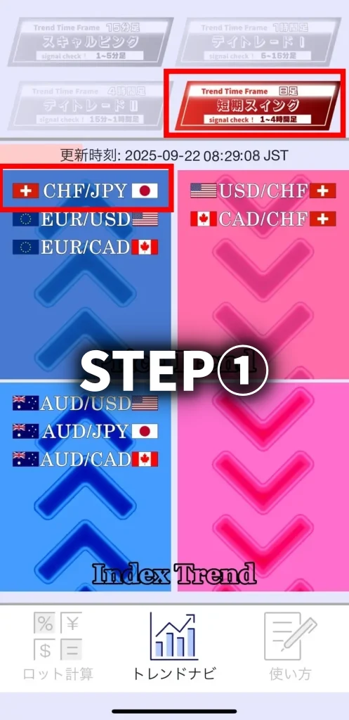 FXスマホアプリ「トレンドナビ」|2025/9/22|高確率エントリーで1:5ビックトレード!CHFJPY短期スイングリアルトレード完全解説