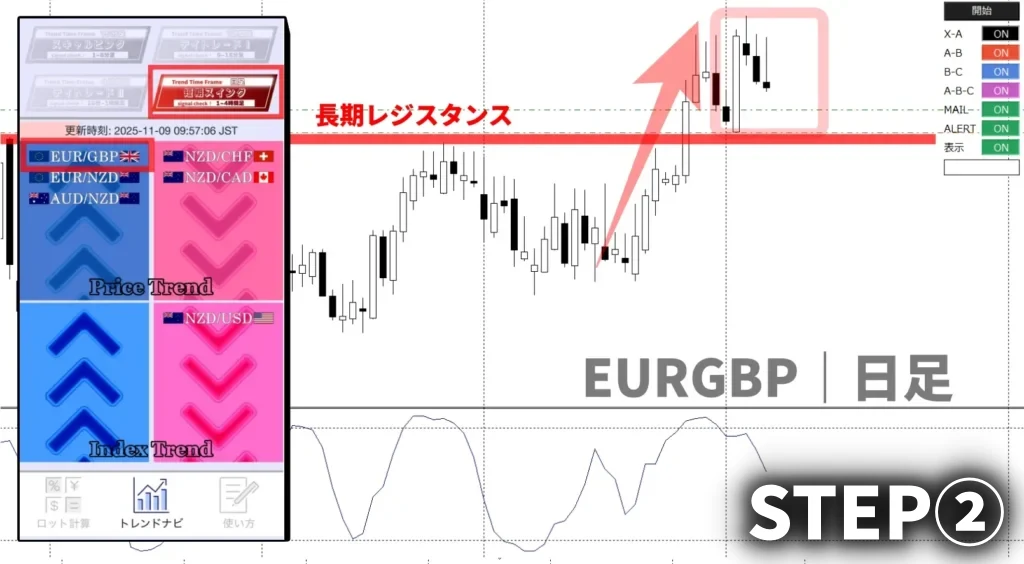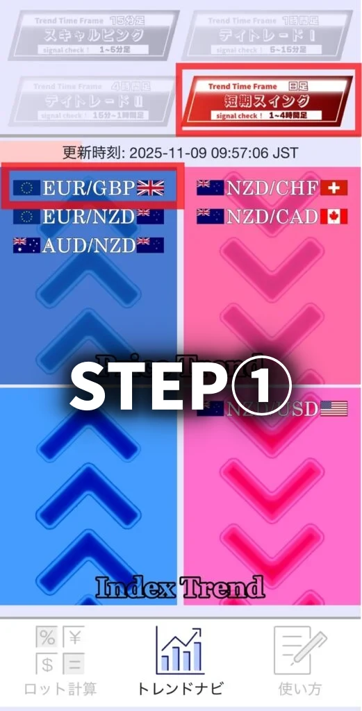 STEP②では、選択した通貨ペアを簡単分析していきます。