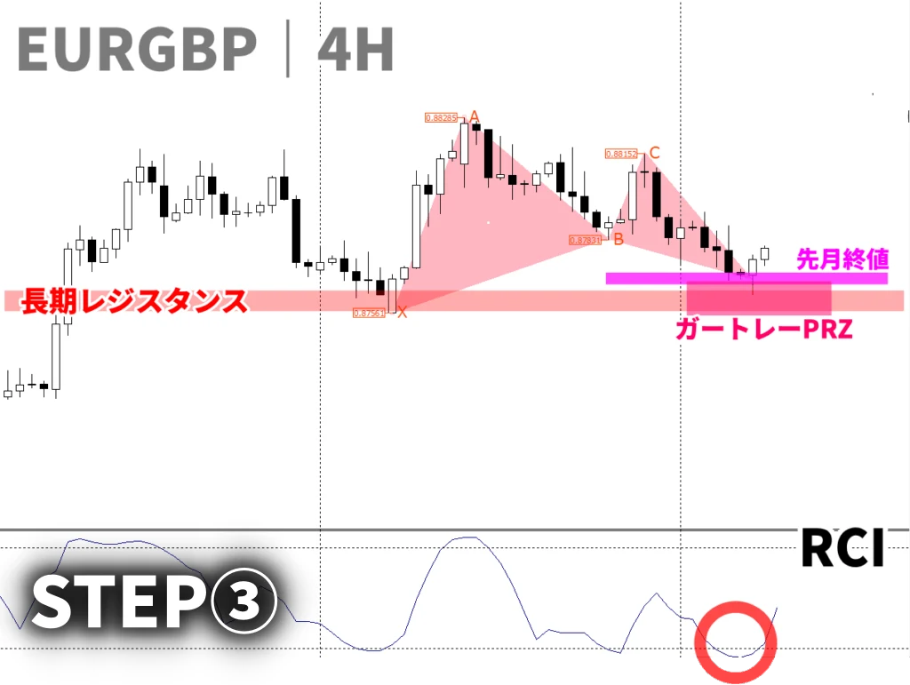STEP③では、4時間足を分析して、高確率のエントリーポイントとエントリータイミングを特定していきます。