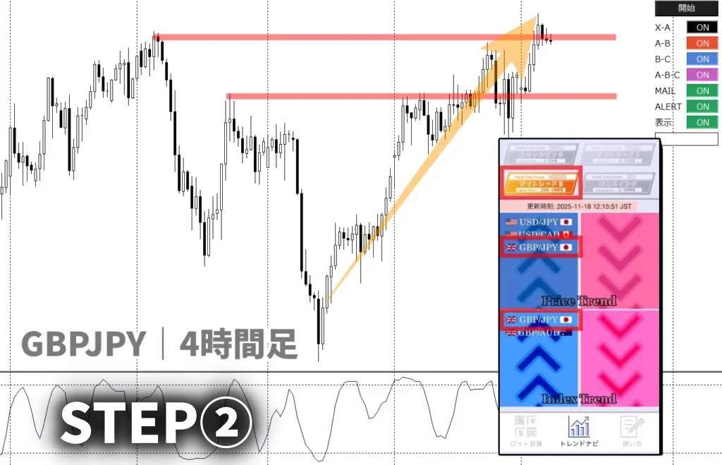 その結果、複数候補の中でも GBPJPYのトレンドが最も優位性が高く、デイトレードに最適な環境が整っていると判断しました。